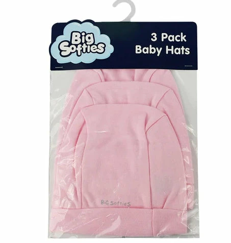 3 pack cotton interlock hats with soft rib detail and shaped for a perfect fit.