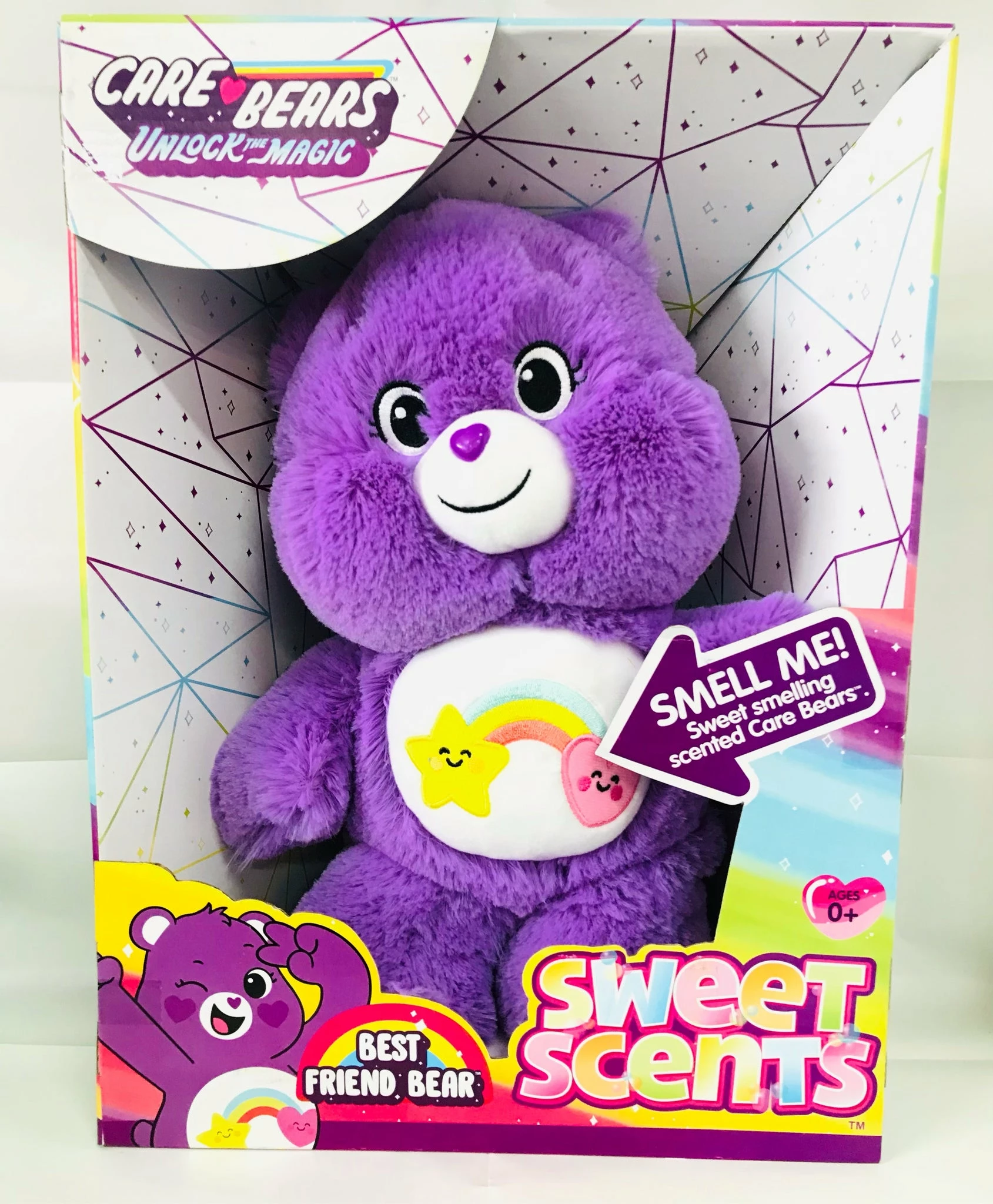 ‘Sweet smelling scented Care Bears! These Cuddly Unlock the Magic Care Bears have a sweet surprise – smell their belly badges and you’ll find out!