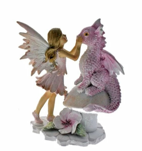 Cotton Candy Imports. Dragon sitting on mushroom with fairy. Please be aware – very fragile