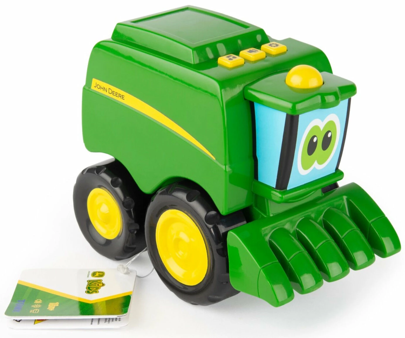 Johnny Tractor and Corey Combine are great first toys for your little farmer. They are designed with toddlers in mind and have fun features for early learners to discover. Johnny Tractor’s working loader can scoop up and then dump into Corey Combine’s hopper! Both toy vehicles also have free rolling wheels for plenty of push along fun.