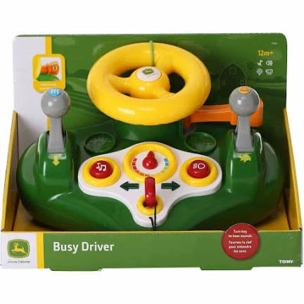 Now your little farmer can experience driving their very own tractor with the John Deere Busy Driver loaded with interactive and fun activities. There are so many ways to play on the John Deere Busy Driver; your little farmer will feel like they are driving the real thing.
