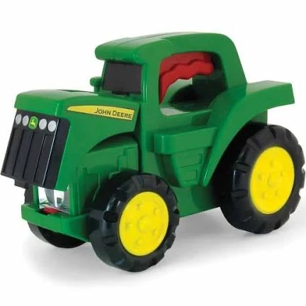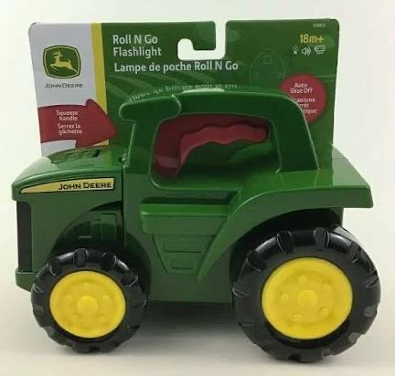 Young John Deere fans will love this tractor flashlight. A simple squeeze of the trigger activates engine sounds and turns on the light. Free rolling wheels for additional play value. Auto light shutoff.