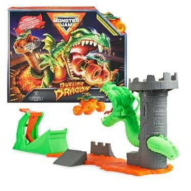 - PERFECT GIFT: The Dueling Dragon Playset works with all of the official 1:64 scale Monster Jam monster trucks (toys sold separately). Monster Jam playsets are the ultimate gifts for 3 year old boys and girls!