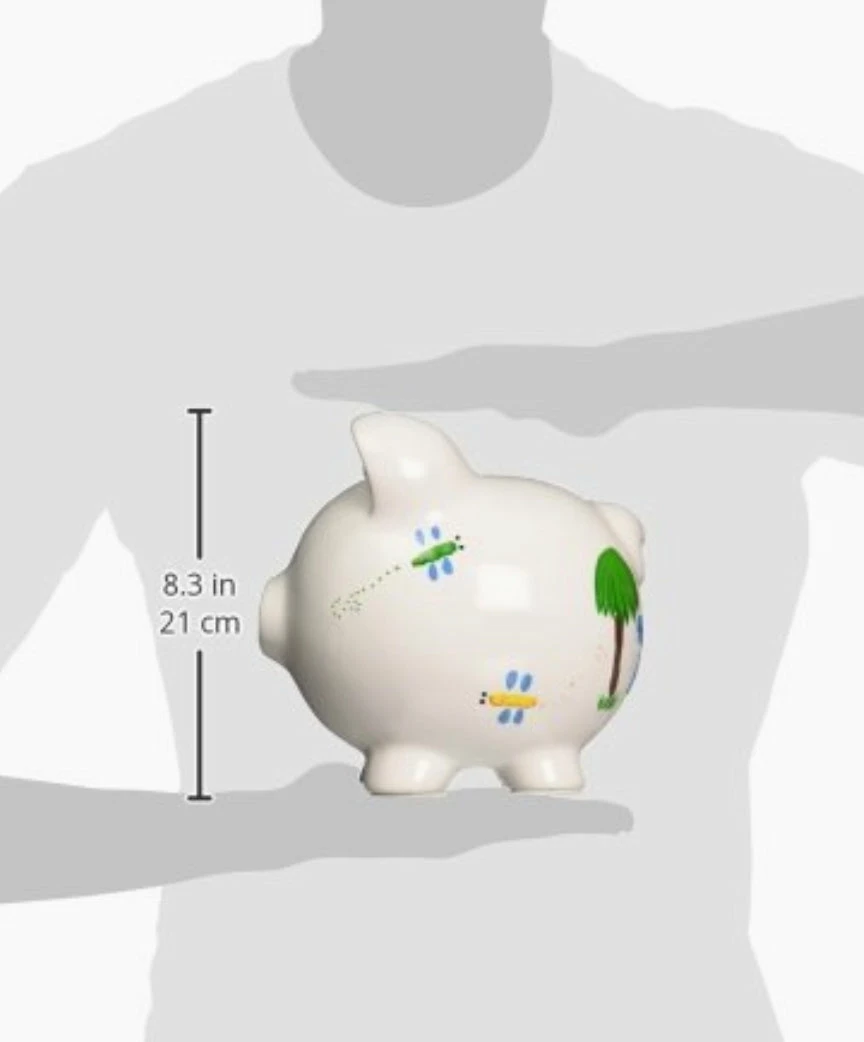 - Beautifully glazed piggy bank features a hand painted design and measures at 8 x 7 inches