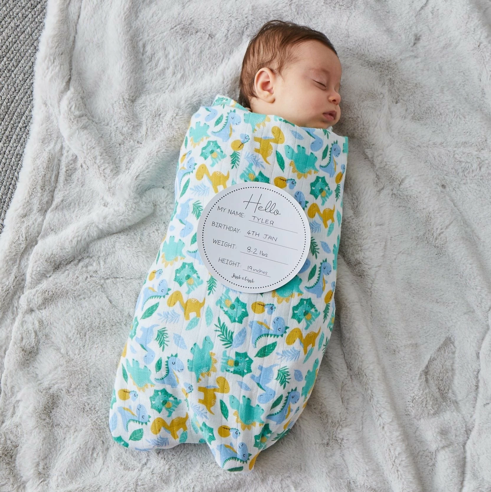 Large, ultra-soft muslin wrap with a unique Arrival Card to announce to the world that baby has arrived! Made from 100% cotton, this muslin is lightweight, breathable and quick drying. Comes in a self fabric bag for the perfect storage solution and great for using when you’re on the go. A thoughtful and practical gift for expecting parents.
