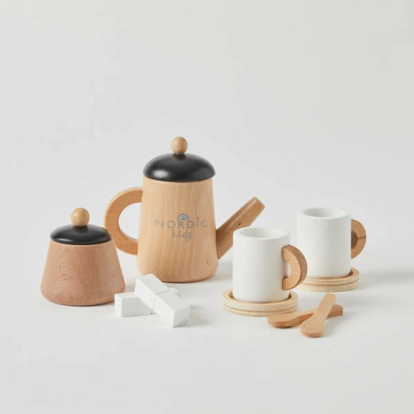 Little ones will love having a tea party with their parents or friends with this stunning wooden play tea set! Includes a teapot with 2 tea cups & saucers, spoons, sugar pot and sugar cubes for endless imaginary play. This tea set will help stimulate fine motor skills and hand-eye coordination as little hands hold the pieces to pour, serve and taste. Presented in printed gift box packaging.
